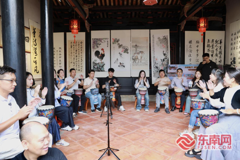 主播们在田洋书院学习打鼓。