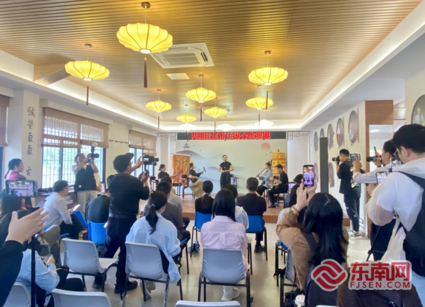 在丙洲南乐馆,主播们还听了一场婉转动听的南音表演。早自清朝乾隆年间,丙洲村各角落的闲暇处,便是村民自娱自乐演唱南音的场所。如今南音已成为联结厦门和金门的重要纽带。