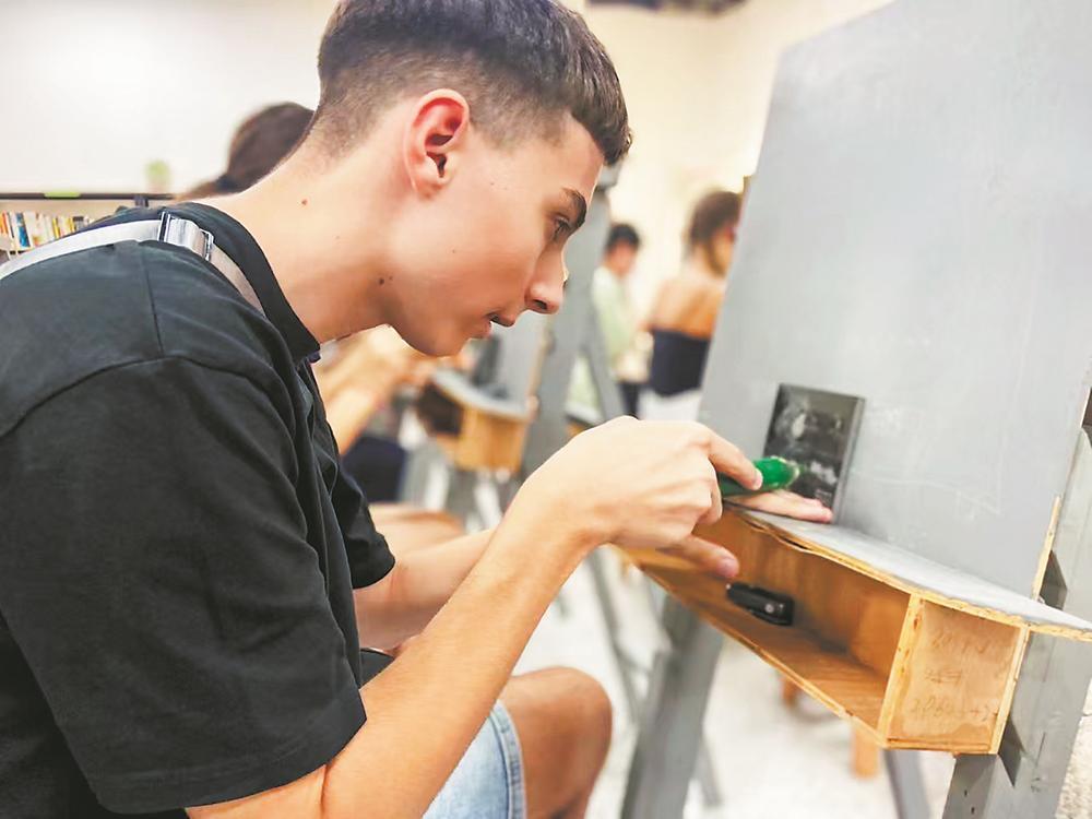 在惠安雕艺文创园,代表团成员在惠安石雕省级非遗代表性传承人蒋清兰的指导下,亲身体验了被誉为“在石头上刺绣”的惠安石雕(影雕)技艺。“在石头上雕刻确实很难,用到的笔很重,但那是我们从未有过的文化体验,太有意思了。”来自保加利亚的青年鲍里斯·布拉戈耶夫手持钢钎笔,双眼紧盯石板,“叮叮”碰撞声此起彼伏,一幅头戴斗笠的惠安女画像也随之初见雏形。