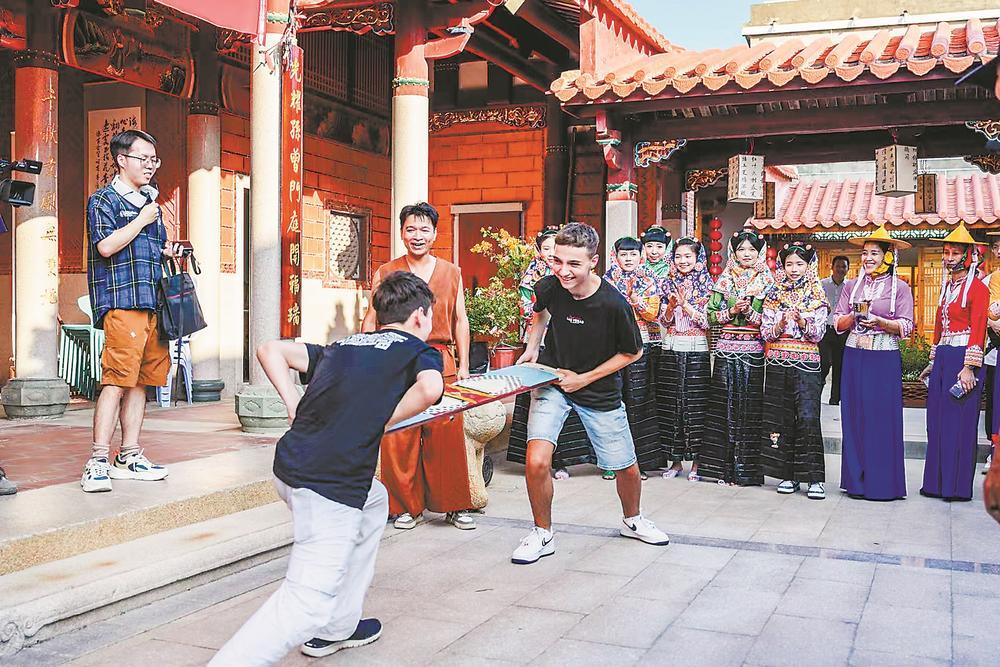 代表团成员来到崇武古城,体验惠安非遗项目“渔家角力”。