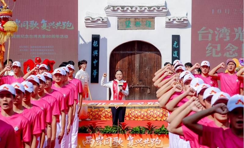 东南网10月25日讯(本网记者 卢金福)2025年是中国人民抗日战争暨世界反法西斯战争胜利80周年,也是台湾光复80周年。在全国人大常委会通过的首个台湾光复纪念日之际,10月25日,由福建省民族团结进步协会、台湾少数民族乡镇市长总会共同发起的“两岸同歌·复兴共跑”——各民族纪念台湾光复80周年活动在福建永安市、台湾宜兰县同步举行,以歌声凝聚精神,以奔跑昭示信念,以宣言坚定意志。两岸各族同胞、师生代表、专家学者等200余人在抗日复台历史见证地永安复兴堡参加活动。