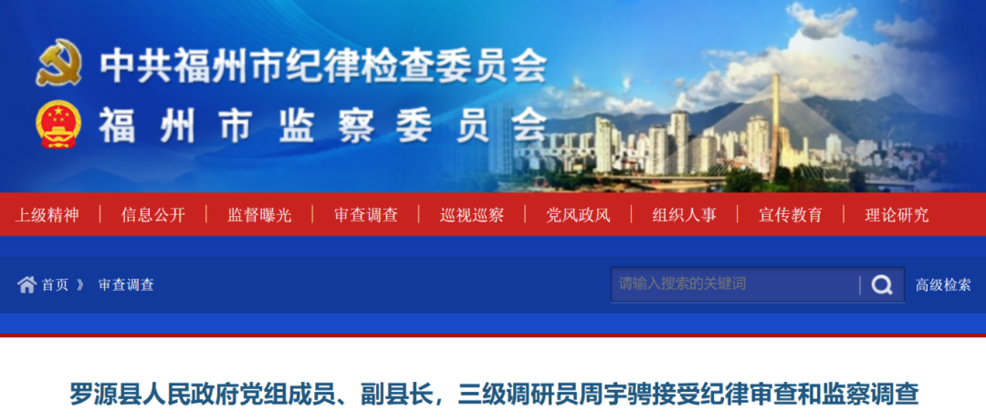 罗源县人民政府党组成员、副县长,三级调研员周宇骋涉嫌严重违纪违法,目前正接受福州市纪委监委纪律审查和监察调查。 周宇骋简历 周宇骋,男,汉族,1975年12月出生,福建罗源人,在职大学学历,1996年7月参加工作,1997年6月加入中国共产党。 1999年7月至2015年6月,历任共青团福建省罗源县委副书记、书记,罗源县鉴江镇党委副书记、镇政府镇长,罗源县住房和城乡建设局党总支书记(正科级),罗源县住房和城乡建设局党组副书记(正科级),松山镇党委副书记、镇政府镇长候选人; 2015年6月至2016年5月,任罗源县松山镇党委副书记、镇政府镇长; 2016年5月至2016年6月,任罗源县松山镇党委书记; 2016年6月至2018年8月,任罗源县松山镇党委书记,罗源湾开发区管委会副主任、北岸港区管委会副主任; 2018年8月至2019年5月,任罗源县松山镇党委书记,罗源湾开发区管委会副主任; 2019年5月至2024年9月,任罗源县人民政府党组成员、副县长; 2024年9月至今,任罗源县人民政府党组成员、副县长,三级调研员。 |