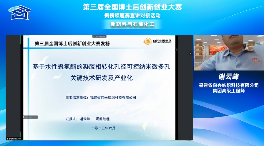 晋江向兴纺织科技有限公司急需的“水性聚氨酯薄膜技术”需求发布仅一周,就收到多个团队响应,最终福州大学罗耀发博士团队的方案脱颖而出……