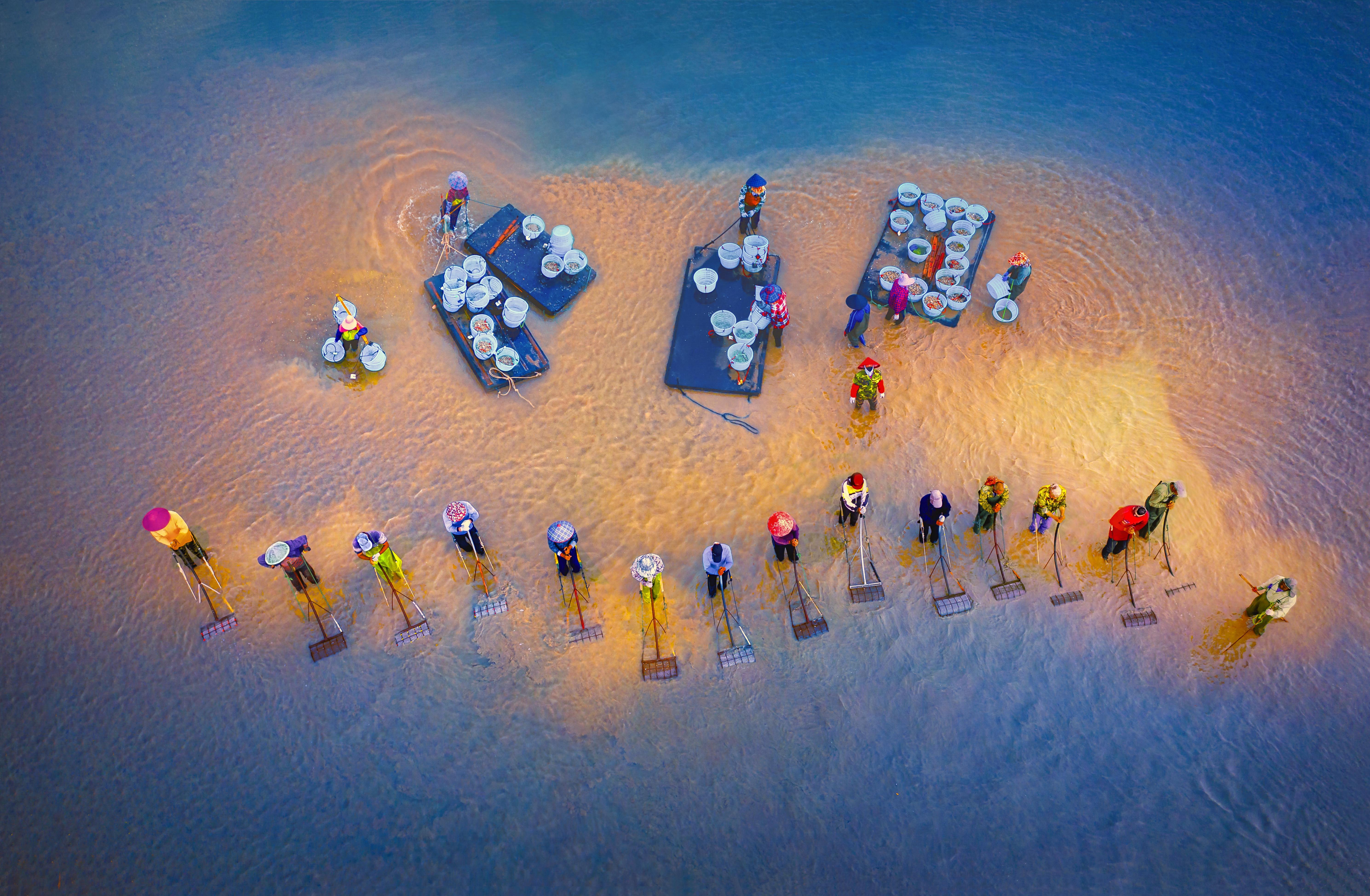 连江滩涂上收蛤作业的场景 陈伟 摄