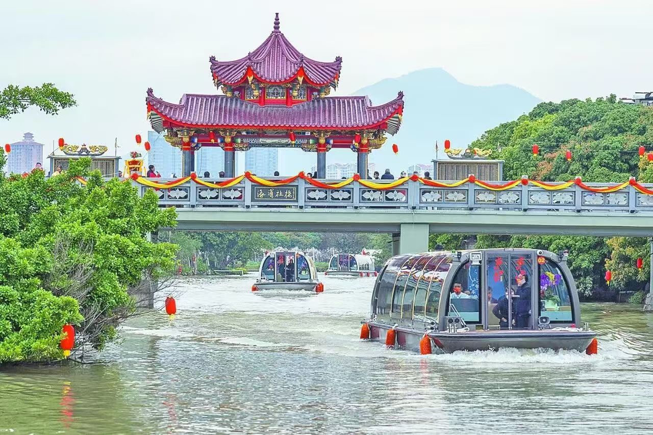 “水上巴士”投运,游览木兰溪流域生态风光成为新潮流。蔡昊 摄