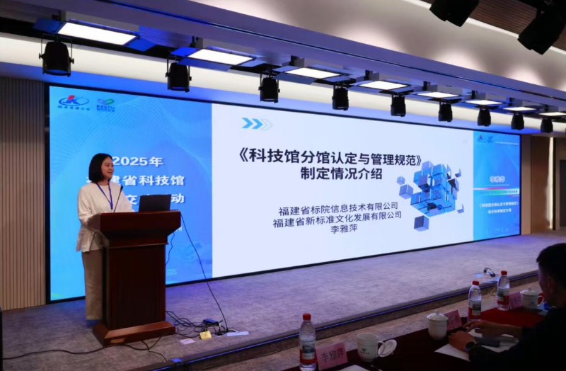 福建省标院信息技术有限公司总经理李雅萍作《<科技馆分馆认定与管理规范>地方标准制定介绍》专题报告,介绍了标准的立项背景、起草过程、调研情况和主要内容,为各地开展科技馆分馆认定工作提供了科学的指导意见。当天,与会人员还前往福州科技馆展厅开展实地调研学习,体验了球幕影院等高科技展项,深入了解展教融合与公众科普服务新实践。