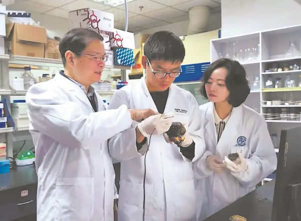 (厦大科研团队在实验室里培育鲍鱼新品种。)