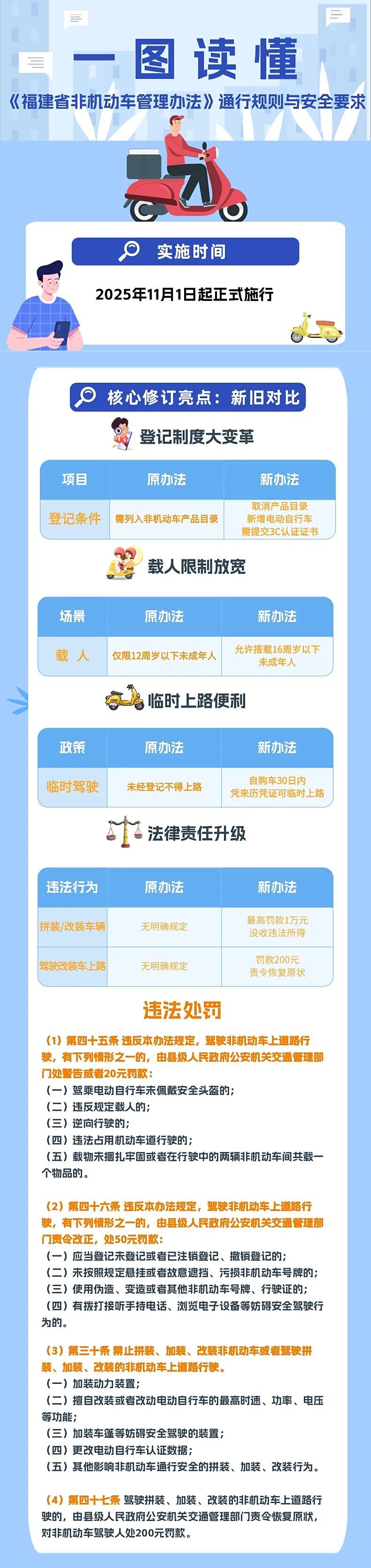 《福建省非机动车管理办法》今起正式施行,一图读懂→