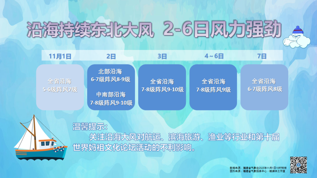 海上大风灾害风险:沿海海区有一定的海上大风灾害风险,需防范大风对航运、滨海旅游、渔业等行业及第十届世界妈祖文化论坛活动的不利影响。