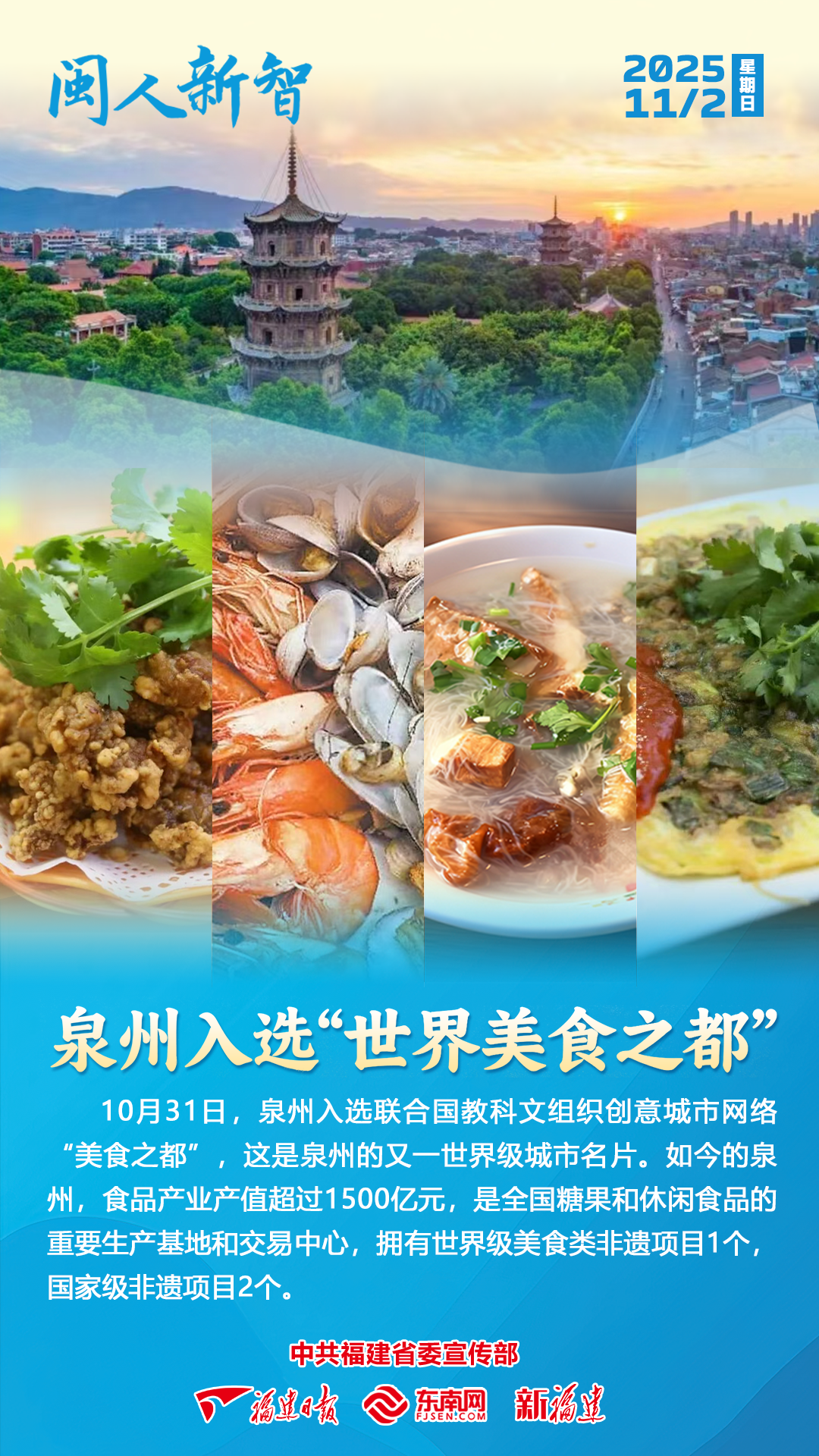 2025年10月31日,泉州入选联合国教科文组织创意城市网络“美食之都”。