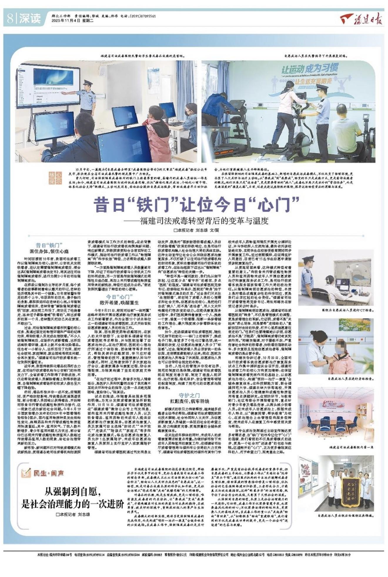 从强制隔离到自愿戒治,福建省司法戒毒医院的“转身”,不仅是管理模式的调整,更是戒毒理念的革新。它证明,戒毒不是“关起来”那么简单,而是要帮“走错路的人”重新找回对生活的热爱,打开心里那扇愿意往前走的门。“但我们也要清醒地认识到,自愿戒治不是‘万能药’,强制隔离戒毒仍有其兜底作用。”郑德良强调,对于屡教不改、严重危害社会秩序的吸毒者,如吸毒后驾驶机动车、多次复吸且拒绝自愿戒治者等,强制隔离戒毒仍是必要手段。