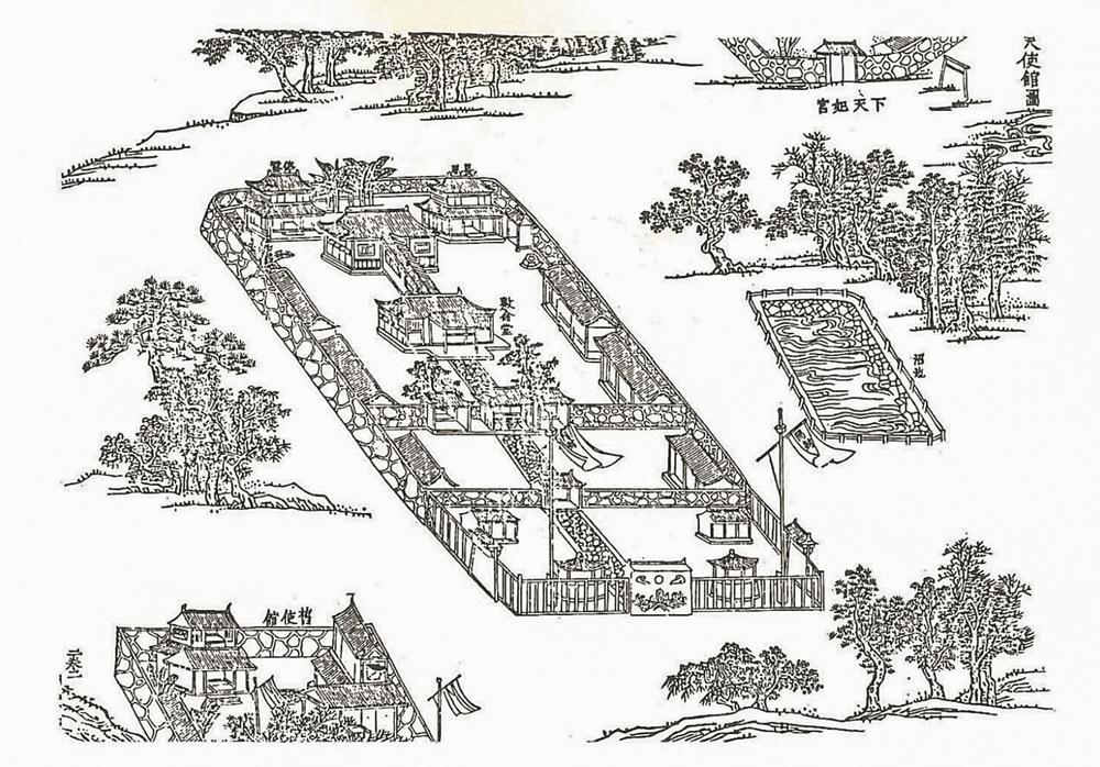 《天使馆图》(出自冲绳县立博物馆《册封使》一书,1989年版) 根据明代邓庆宷辑录的明代荔枝专著《闽中荔支通谱》中的《闽荔通谱序》记载:“闽中名果,荔淂冠军,生于濒海,名彻上京,价高外夷。”荔枝作为福建省的标志性水果之一,很早就漂洋过海畅销海外,并与琉球结下了一段佳缘。 清乾隆二十一年(1756年)奉旨出使琉球的清代官员周煌、全魁等所编纂的《琉球国志略》中,已有对福建荔枝传入琉球的明确记载。该书在“物产”篇中写道:“荔枝、龙眼(二种皆自闽来,不甚繁植)。” 到了清嘉庆五年(1800年),奉旨出使琉球的李鼎元在品尝过福州的荔枝后,对于琉球的荔枝品质心生疑窦。根据《使琉球记》记载,李鼎元抵达琉球时,荔枝尚未成熟,他仅尝到了琉球王国的龙眼:“(七月)十五日……果有龙眼,种自闽来,味甚薄,闻植亦不繁。”由于龙眼风味欠佳,他不由得推断:“因念荔支他日即实,未必如闽然。果实亦固难得,《志略》载‘物产有荔’,虚也。”也就是说,李鼎元认为《琉球国志略》记载物产中有荔枝,此说恐怕有虚。 在明清两代的历史长河中,中国先后23次向琉球派遣册封使,总计43位使臣。这些册封使皆为学识渊博、满腹经纶之士,他们出使时,以生花妙笔将沿途的所见所闻、所思所感一一记录,这些珍贵的文字便汇成了后世所称的“册封使录”。 在这些宝贵的册封使录里,李鼎元所著的《使琉球记》对荔枝的描述最为详尽。他采用日记体的形式,详尽记录了自己抵达福建后,将荔枝跨越重洋带到琉球,并亲手将其种于天使馆——这座琉球王国为中国册封使精心准备的住宿之所的奇妙历程。 “(闰四月)二十一日(癸酉),雨。午刻,汪抚军招饮。署基甚高,踞嵩山之麓,宋王尚书祖道故宅也。闽时为五诸侯馆,至今犹称馆前。入门,夹道皆荔支。堂侧有精舍轩豁,可以远眺。层级而下,有园曰‘牧荔’,即岁荔支以供御用者。余地尽为圃,饶瓜菜,抚军躬行节俭,于此见一斑矣。惟时芭蕉尚花,间有甘露。荔支尚未大熟,因向抚军乞得盆植二本,已结实,意欲携之过海,栽于中山。非敢希召伯甘棠,亦聊以自励耳。” 从这段文字可知,李鼎元带往琉球的荔枝,源自福建“牧荔园”。此园原是宋代兵部尚书王祖道的故居,入门后,道路两旁荔枝成林。园中荔枝非同寻常,乃贡品荔枝,品质之优自不待言。李鼎元索要的两盆荔枝虽未成熟,却已挂果。他明确表示,要携荔枝漂洋过海,种于琉球中山,还借《诗经·甘棠》典故自勉。 福建荔枝品类丰富,究竟是哪一品种促成了这段流传佳话?答案在一个月后水落石出。 “(五月)十八日(己亥),雨。栽荔支于使院庭后,南北分列:南者一本二干、北者一本三干,长四尺以上,移自牧荔园,种曰‘陈家紫’。既为诗以祝之,并序其由来,刻碑列于北楼之侧。球阳(琉球别称)地气温暖,或可望其荣实也。” 彼时,李鼎元已穿越波涛翻涌的大海抵达琉球,他满怀虔诚地将荔枝栽种在天使馆内,南北各植一株。他特意点明荔枝品种为“陈家紫”,还兴致勃勃地为此赋诗一首,满心期待着荔枝树能在温暖的琉球春华秋实。 此处提及的“陈家紫”,在荔枝界可谓当之无愧的顶流。北宋蔡襄曾赞誉“闽中荔支,唯陈家紫号为第一”。南宋范成大同样对其推崇备至,认为“陈家紫”不仅是福建荔枝中的魁首,更远超其他省份的荔枝品种,他言道:“涪陵荔子,天宝所贡,去州里许有此园。然峡中荔子不及闽中远甚,陈紫又闽中之最也。”为此,范成大还专门赋诗一首:“露叶风枝驿骑传,华清天上一嫣然。当时若识陈家紫,何处蛮村更有园。” 但有趣的是,李鼎元专程为此所赋诗作,却没有点明“陈家紫”,而是用了福建另一知名荔枝品种的名字“十八娘”。我们先来品一品李鼎元的《使院种荔支诗并序》:“知公有遗爱,即此是甘棠。涉海五千里,倾城十八娘。宿缘真不偶,异国亦何伤。郄羡重来者,新红任饱尝。” 此处提及的“十八娘”,也是福建知名的荔枝品种。根据《宋蔡君谟荔支谱》“第七”中记载:“十八娘荔支,色深红而细长,时人以少女比之。俚传闽王王氏有女第十八,好噉此品,因而得名。其冢今在城东报国院,冢旁犹有此树云。”或许正是因这充满浪漫色彩的美好传说,李鼎元才在诗作中加以引用。 实际上,“十八娘”在历史上的名气丝毫不逊色于“陈家紫”。据《明徐兴公荔支谱三·叙事》记载:“汉武帝元鼎六年(公元前111年),破南越,建扶荔宫,以荔支得名也。此荔骈生,若十八娘之类。”可见“十八娘”很早就名声斐然。书中还评价“十八娘细骨,杨贵妃香肌,莫能比也”,这无疑为“十八娘”这一荔枝品种增添了几分令人遐想的韵味。 对于副使李鼎元的这些风雅意趣,正使赵文楷不仅欣然赞同,还特意赋诗一首《李墨庄舍人自闽抚署携荔支二株渡海种于使院》:“种向扶桑国,来从牧荔园。孤根托绝域,宿土忆中原。海雨新枝湿,闽烟旧干存。岛夷应护惜,毋用插篱藩。”借诗叮嘱琉球众人要好好爱护这荔枝。 实际上,状元出身的赵文楷一直对福建荔枝青睐有加。譬如自福州启程之际,面对福建庆晴村将军的饯别诗,赵文楷在《和庆晴村将军“送行”韵二首》中挥毫写下:“越王城畔水天同,螺女江头尽日风。此去好看樱岛碧(樱岛,琉球山名),揭来犹及荔支红。鲛人百道迎飞楫,海国千灵憺寿宫(时奉命论祭天后,并祭海神)。已信布帆归路稳,波恬不拟问弓隆(甲