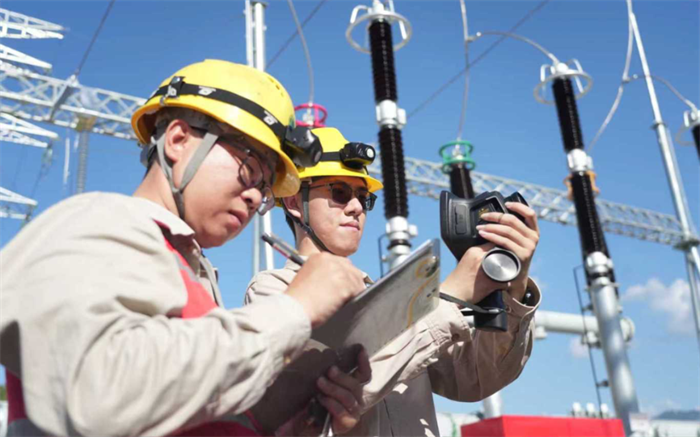 ▲国网三明供电公司工作人员正在220千伏观成变电站内进行巡检 谢章辉|摄