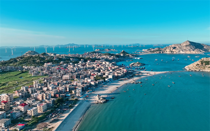 如果要选择一种颜色代表一个省份,在福建,绿色一定最具竞争力——广袤林海在层峦叠嶂间翻涌着碧浪,光伏板在骄阳下泛起蓝色涟漪,风力发电机与天蓝海碧相映成趣,铺展出一幅绿色的生态画卷。