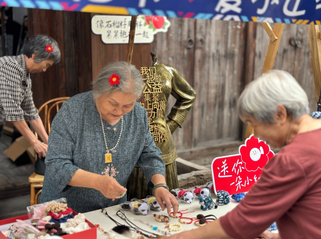 2025年“久久公益节”期间,在四川自贡的仙市古镇,老人们变身爱心摊主,用手作小物件摆起了旧物置换摊位。
