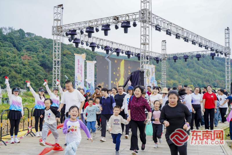 上午9时30分,随着启动球亮起、彩烟绽放,康养明溪主题活动日正式拉开帷幕。亲子健步行活动在发令枪声中热情开走,百组参与家庭沿指定路线徒步,沿途领略明溪秋色,并在终点领取“康养能量包”,开启一天的健康之旅。