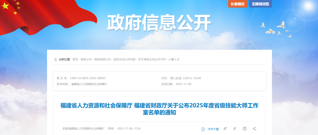 根据《福建省人力资源和社会保障厅 福建省财政厅关于公布2024年国家级高技能人才培训基地和技能大师工作室项目单位备案名单和开展2025年评选工作的通知》(闽人社函〔2025〕123号)《福建省人力资源和社会保障厅 福建省财政厅关于开展2025年度省级技能大师工作室建设和评估推荐工作的通知》(闽人社函〔2025〕124号)文件要求,遴选2025年省级技能大师工作室(新建项目)60个、评估推荐发挥作用突出的省级技能大师工作室(已建项目)10个,现予以公布,并就有关事项通知如下: