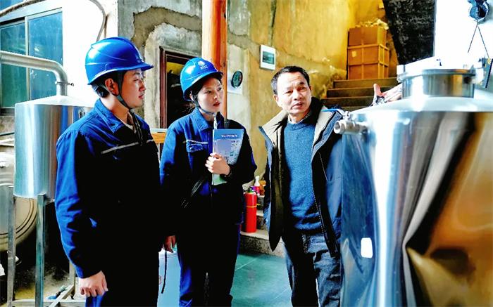 ▲国网龙岩供电公司组织员工深入土楼周边制酒工坊,对相关设备开展检查,向客户宣传安全用电常识 | 袁鸿梅 摄