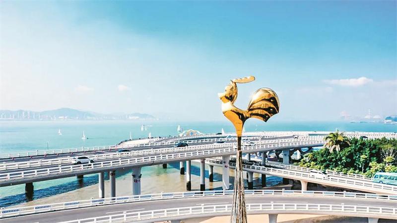 金鸡奖杯造型雕塑屹立在金鸡百花星光海岸。图片来源:福建日报