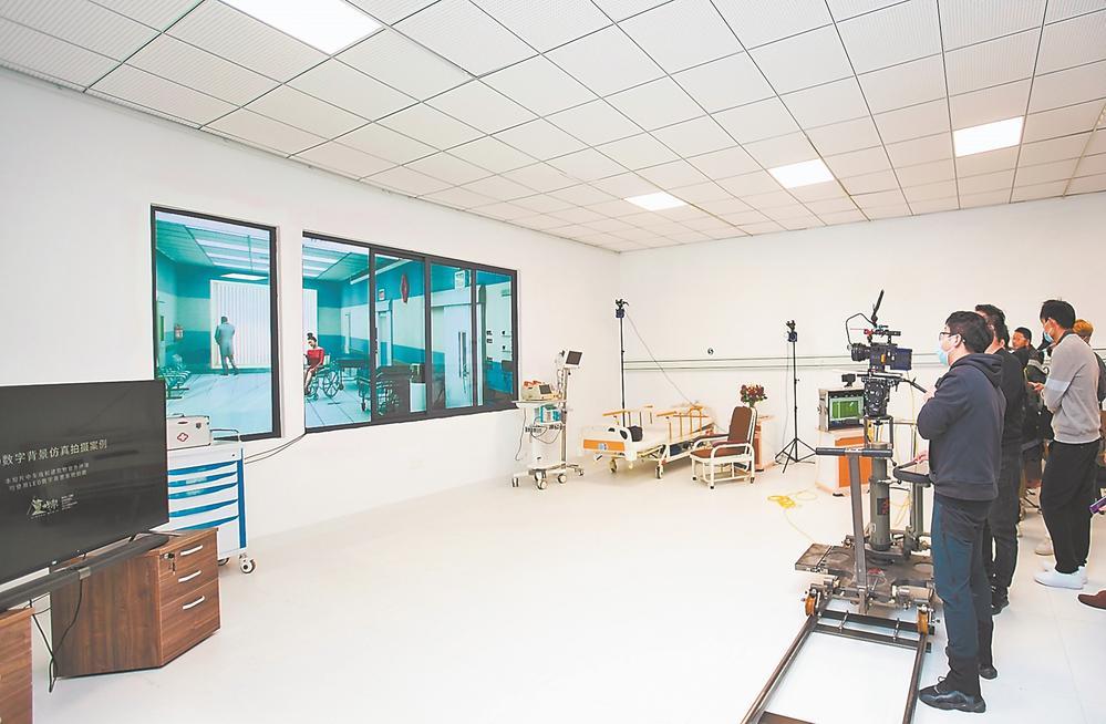 厦门影视拍摄基地数字影棚内,正在模拟窗外场景。图片来源:福建日报