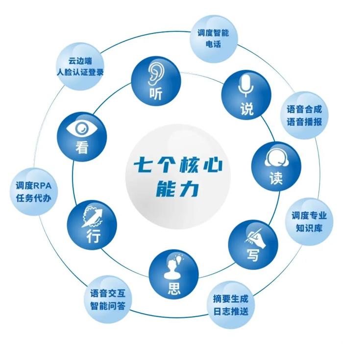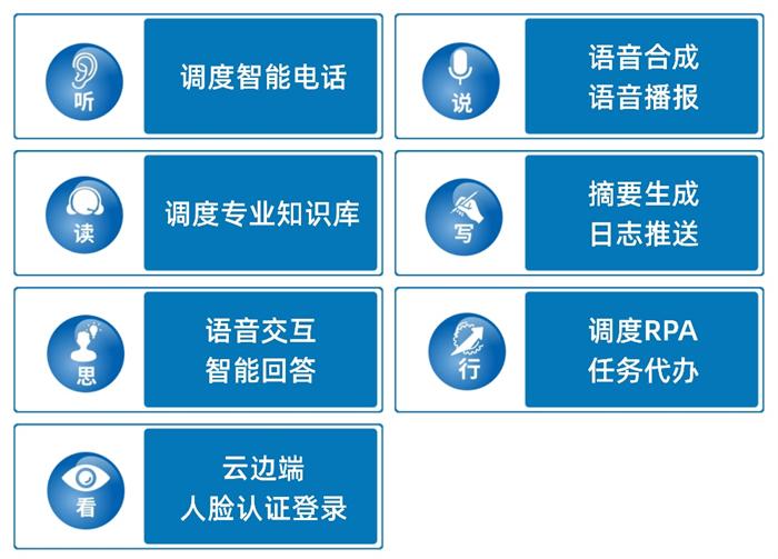 “智能终端”具备“听、说、读、写、思、行、看”七大能力,覆盖“电话转写、电话通话、电话摘要、代办管理、人脸登录、日志生成、交互问答、RPA任务”八大调度场景,全面解决传统调度痛点。