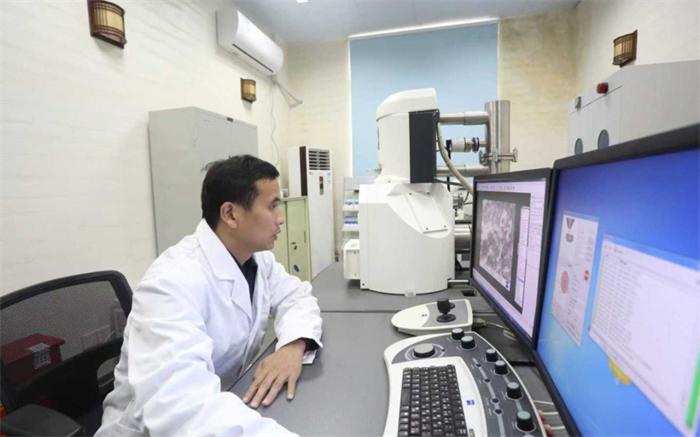 ▲科研人员正在使用扫描电子显微镜观察金相组织