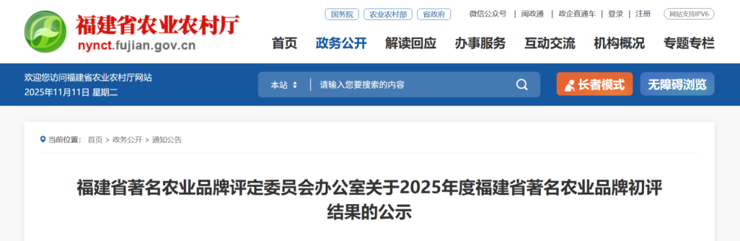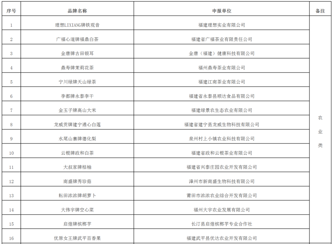 根据《福建省著名农业品牌评选认定管理暂行办法》(闽农绿〔2017〕203号)有关规定,经各设区市、平潭综合实验区农业农村、林业、海洋与渔业行政主管部门推荐,省级行政主管部门初审、专家初评,形成2025年度福建十大农产品区域公用品牌推荐名单(附件1)和2025年度福建名牌农产品推荐名单(附件2),现予以公示。