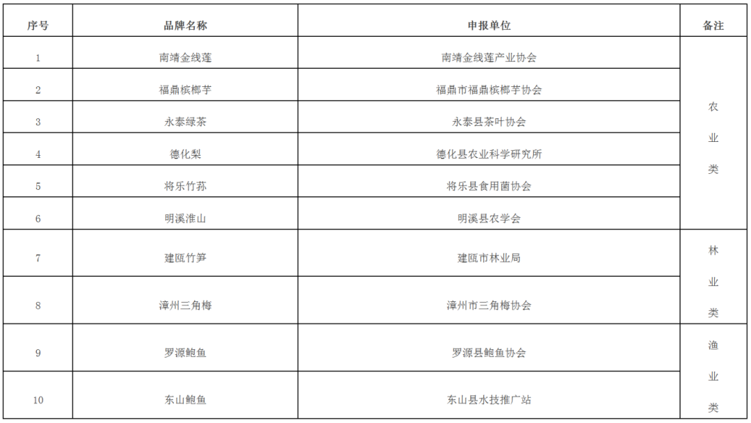 附件:1.2025年度福建十大农产品区域公用品牌初评推荐名单