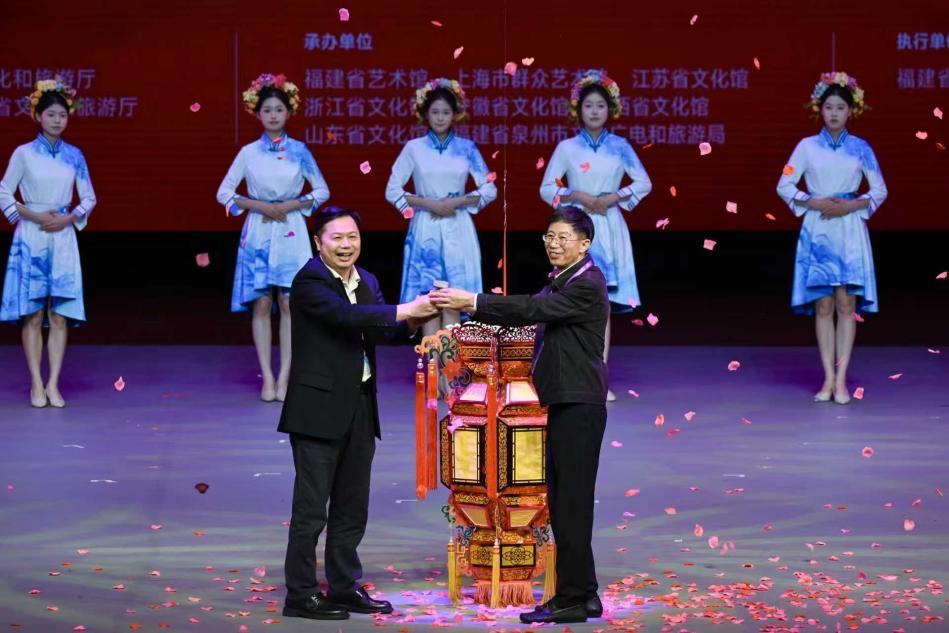 当晚,大赛颁奖晚会暨惠民演出在泉州大剧院精彩上演。福建省文化和旅游厅党组成员、副厅长吴新斌,上海市文化和旅游局副局长廖燕灵,江西省文化和旅游厅二级巡视员杨丁,泉州市人民政府副市长黄文捷,以及华东六省一市文旅系统相关领导嘉宾出席活动,并为获奖节目颁奖。