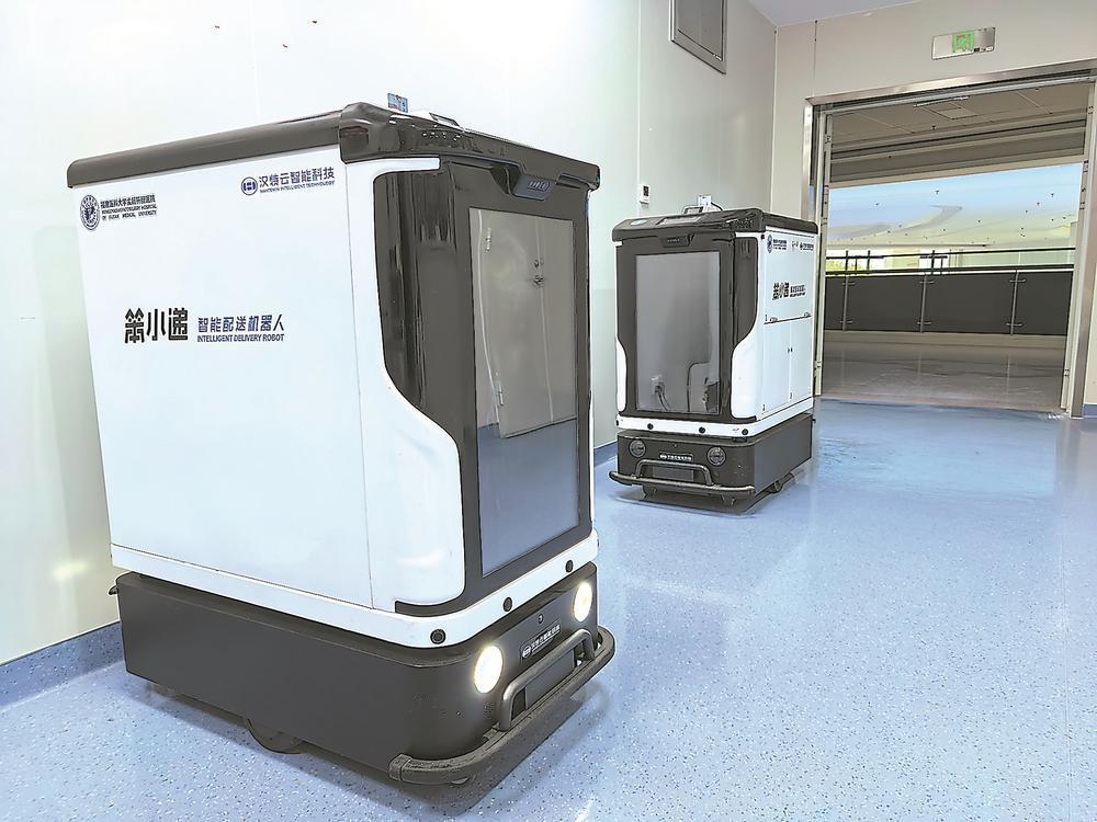 孟超肝胆医院投用的送药机器人 张文奎 摄