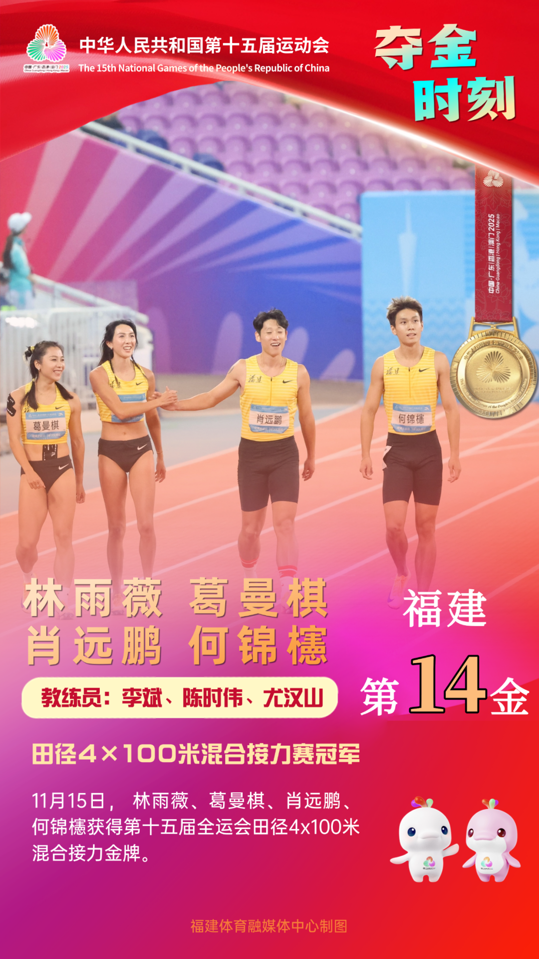 聚焦十五运 | 福建健儿勇夺田径4×100米混合接力赛金牌!