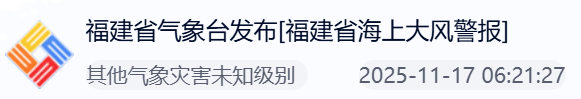 今日上午6时21分,福建省气象台发布海上大风警报。今天,东北风,全省沿海6-7级阵风8级转7-9级阵风9-11级,台湾海峡6-7级阵风8级转8-10级阵风10-12级。