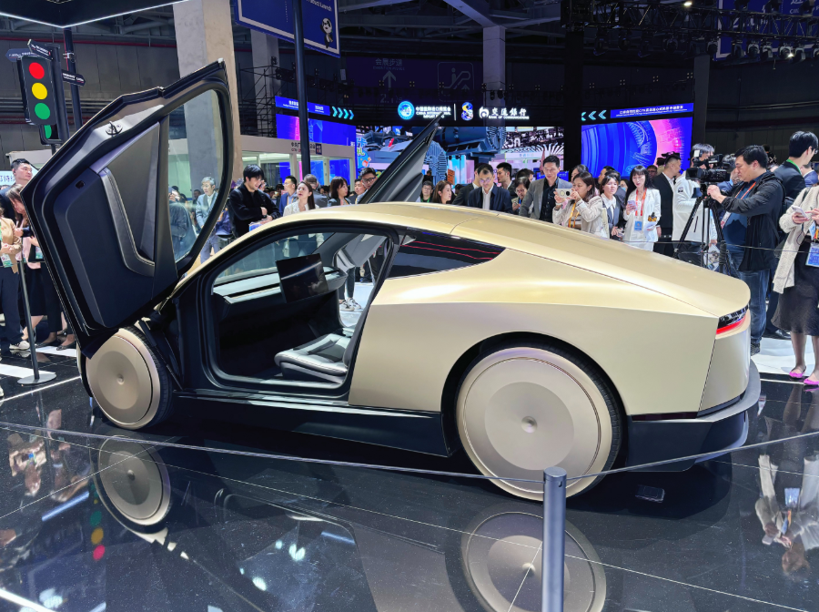 在未来,我们将有怎样的出行解决方案?在汽车及智慧出行展区,特斯拉赛博无人驾驶电动车(Cybercab)迎来了其在亚太地区的首秀,以一抹金色外观及流线型车身成为吸睛焦点。