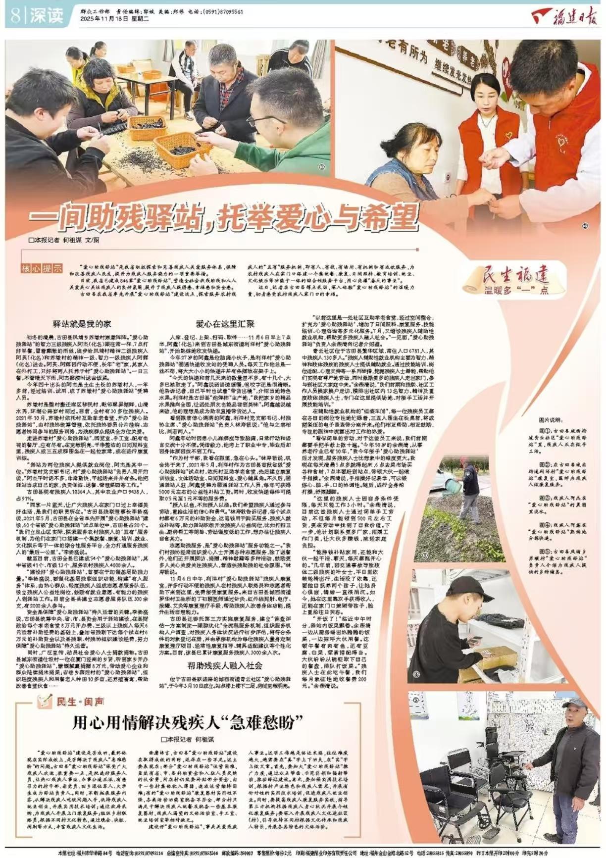 近日,记者在古田县蹲点采访,深入体验“爱心助残驿站”的温暖力量,切身感受农村残疾人家门口的幸福。