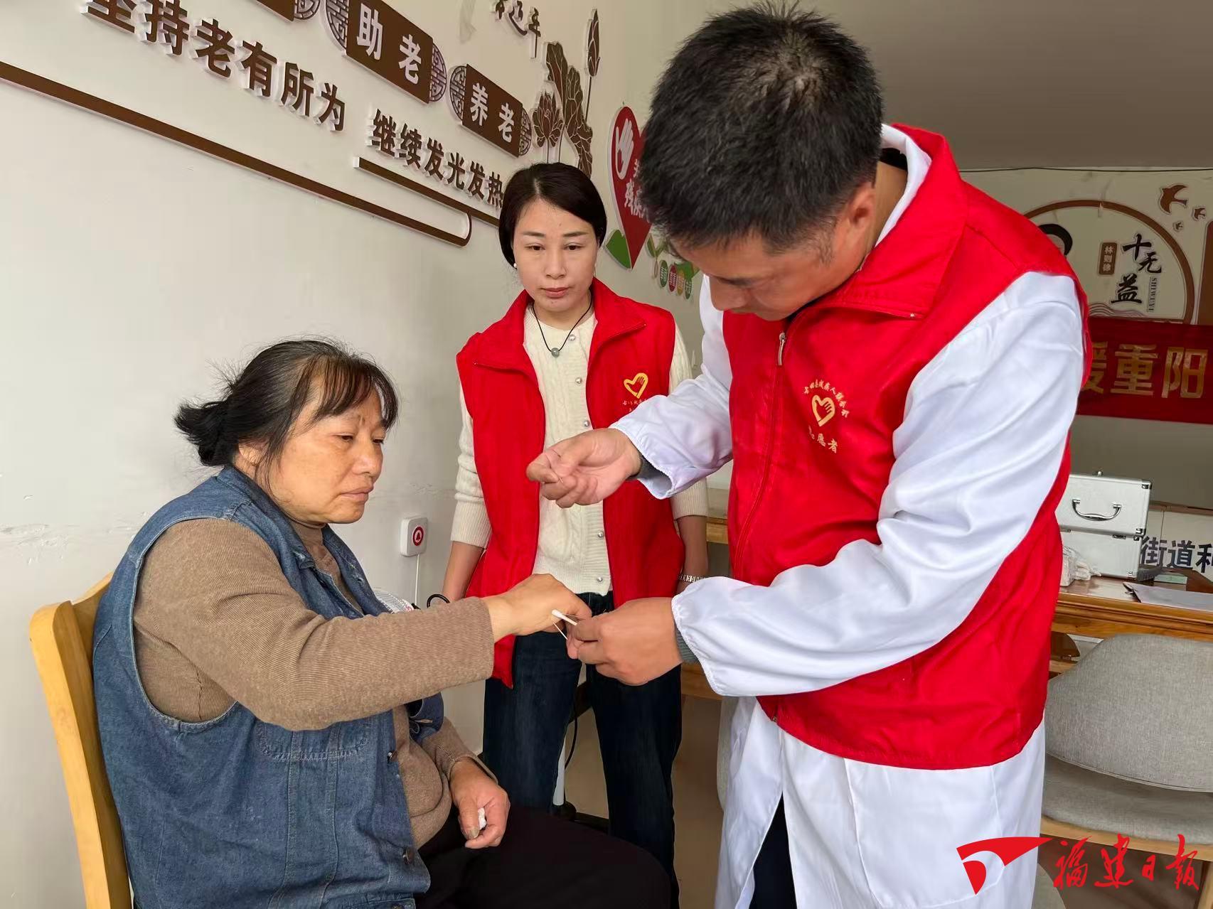 11月6日中午,利洋村“爱心助残驿站”残疾人康复室,许多行动不便的残疾人在村残疾人联络员和志愿者帮助下来到这里,免费接受康复服务。来自古田县城西街道罗华村卫生所的丁初朝医师通过针灸、红外线照射、电疗、拔罐、艾灸等康复理疗手段,帮助残疾人改善身体功能,提升生活自理能力。