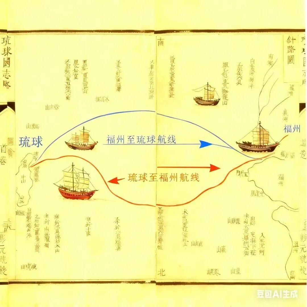 琉球加入朝贡体系,成为明朝藩属。(AI制图)
