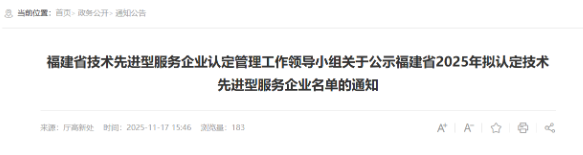 关于公示福建省2025年拟认定技术先进型服务企业名单的通知