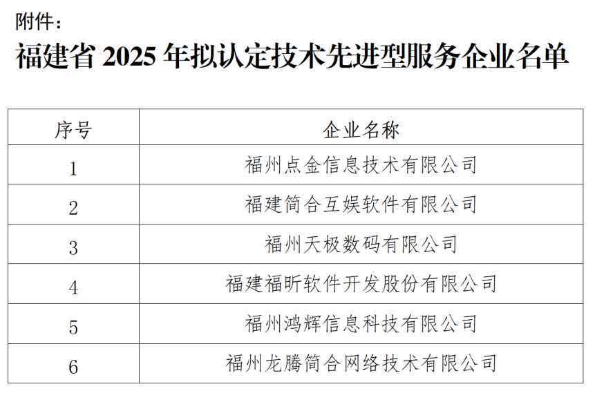 附件:福建省2025年拟认定技术先进型服务企业名单
