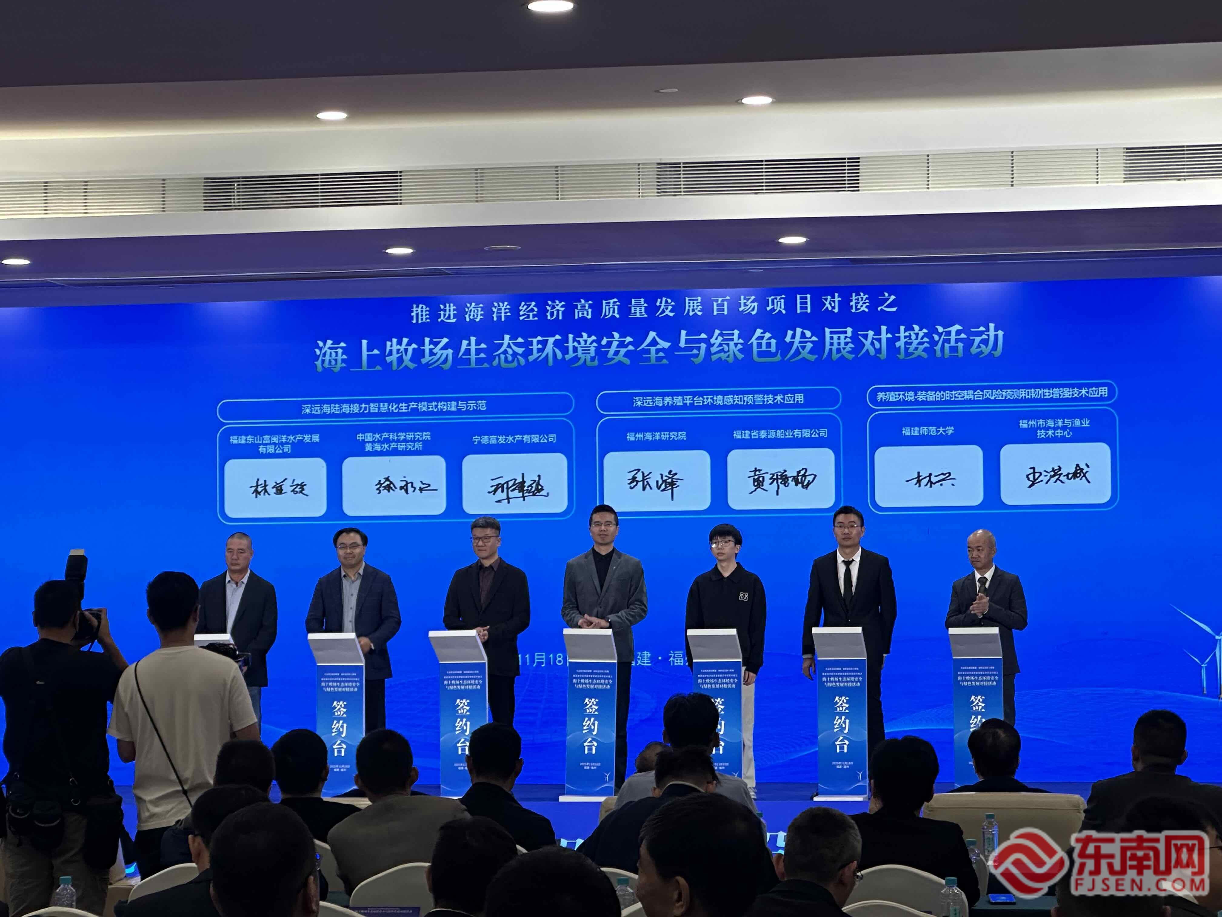 东南网11月19日讯(本网记者 陈楠 文/图)昨日,推进海洋经济高质量发展百场项目对接之海上牧场生态环境安全与绿色发展对接活动在福州举行。活动以“生态优先科技赋能 加快建设海上牧场”为主题,由福建省海洋与渔业局和中国水产科学研究院联合主办,福建省海洋与渔业局二级巡视员朱红、中国水产科学研究院副院长王玉梅出席活动并致辞。