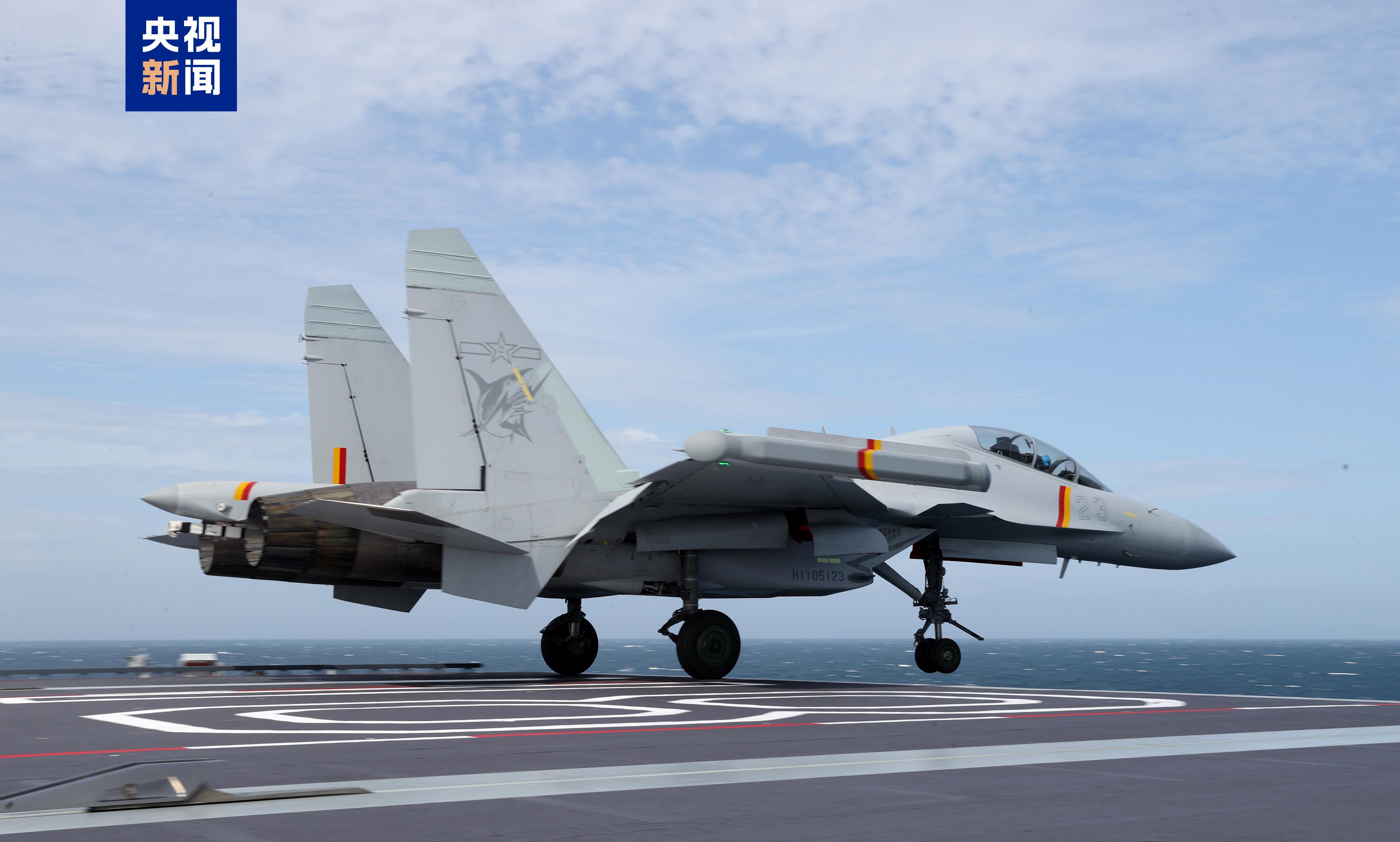 歼-15DT首次现身福建舰