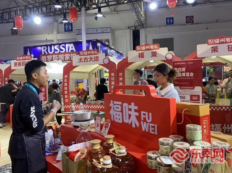 福州携“福州有礼”品牌亮相,688款富有地方特色的精品好物、300多种经典闽菜与风味小吃及17家老字号齐聚,尽显闽都文化魅力。
