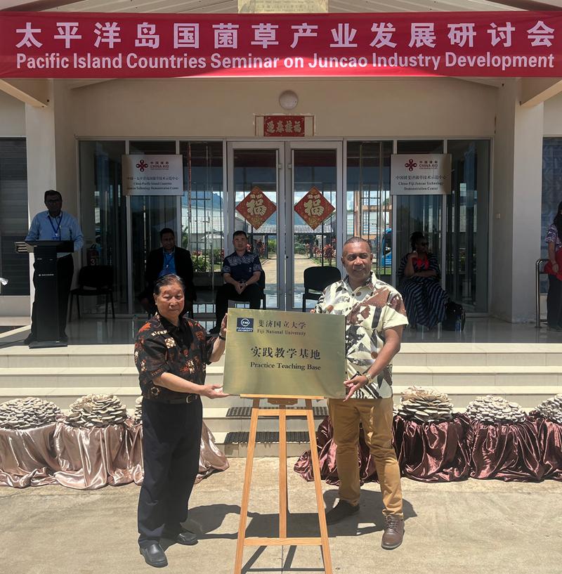 会议期间,援斐济菌草项目向克罗尼维亚研究站、纳乌索农业技术学院、辛卡托卡研究站、杨嘎啦牧场有限责任公司等示范点捐赠了菌草加工设备。同时,举行了斐济国立大学、瓦图来鲁学院和纳乌索农业技术学院教学与实践基地揭牌仪式。