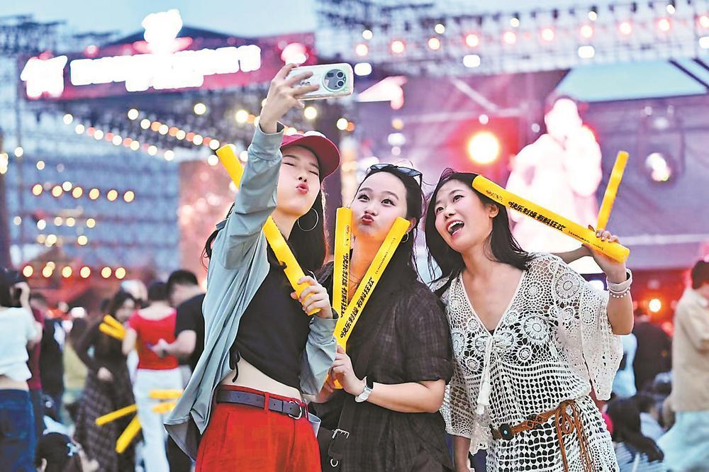 乐迷在银河左岸音乐节现场合影。 蔡昊 摄