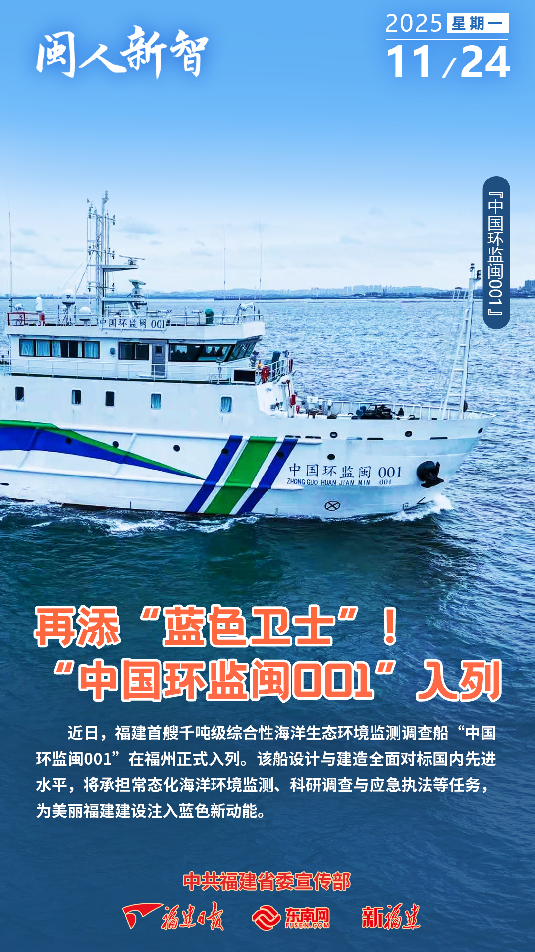闽人新智|再添“蓝色卫士”!“中国环监闽001”入列