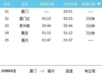 根据计划安排,“歌迷专列”G9804次列车将于12月8日0时01分从厦门站出发,1时47分终到福州站,途中各停站只办理旅客下车业务。