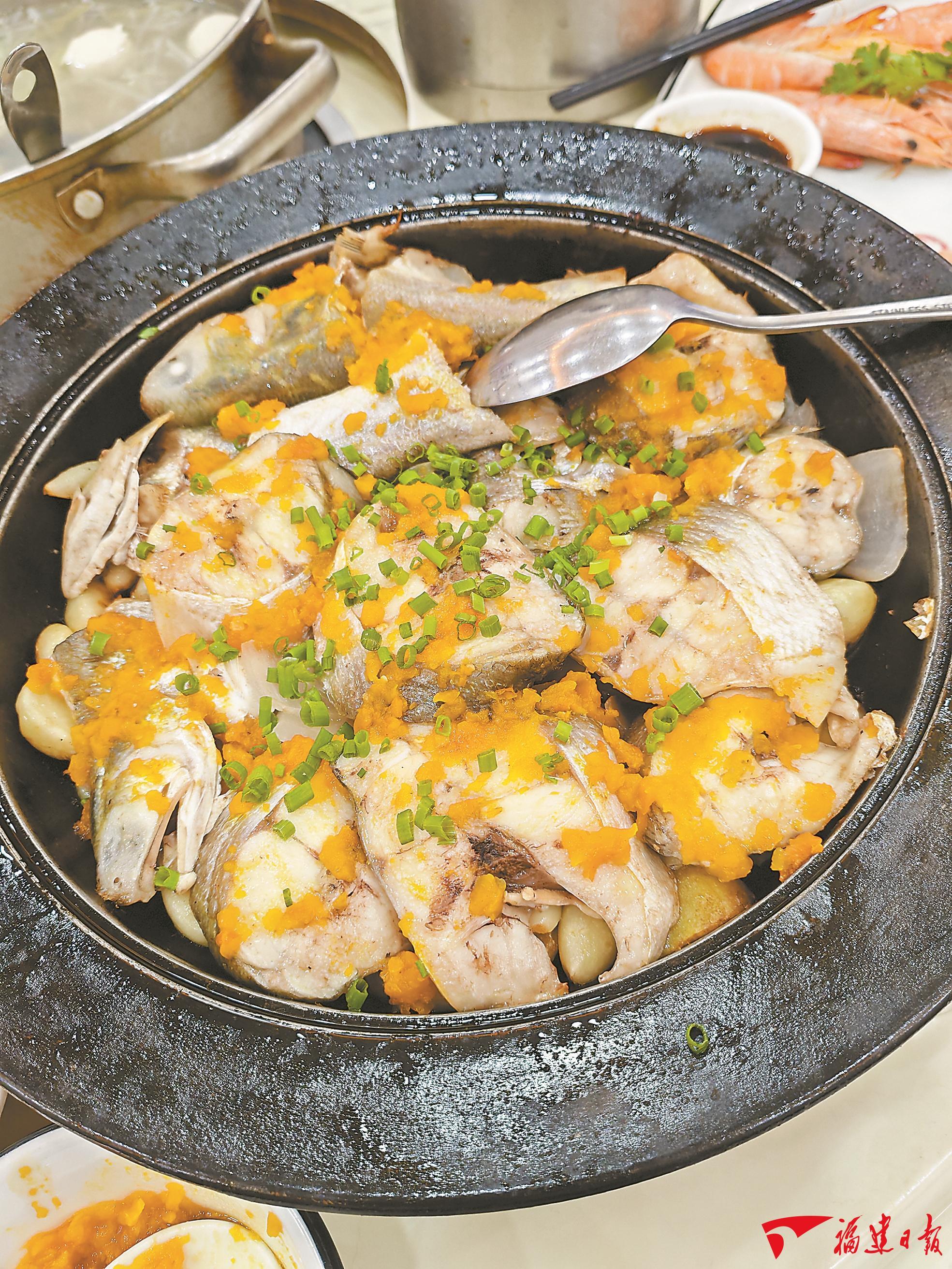马友鱼是一种多脂肪的名贵鱼类,肉质鲜美、细腻而爽口,鱼肉分层,脂肪厚度超过10%。图为盐焗做法。