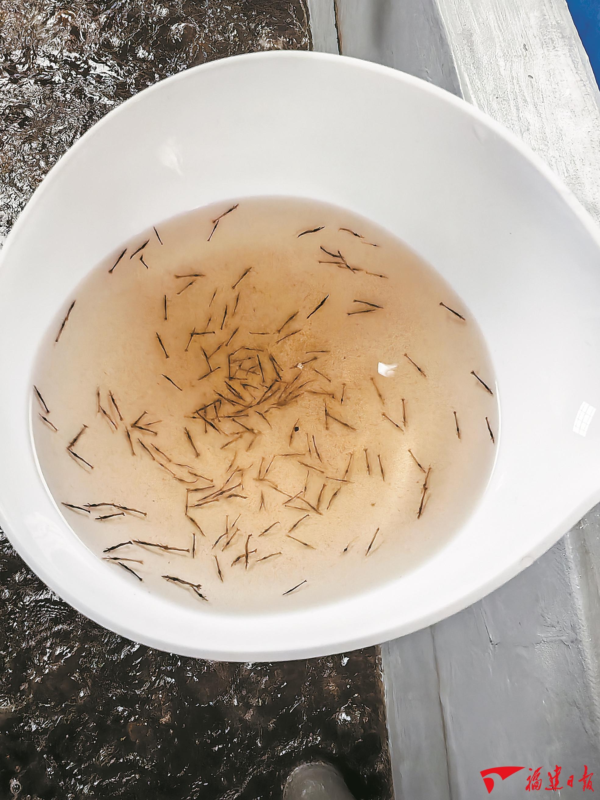 经过两年试验,目前从台湾游来的马友鱼一代成功孵化出福建一代,并且养殖二代已经顺利出塘,目前二代的本土苗也长大了。“公司的标准化繁育基地已经逐步扩大到117亩,保种亲本近万尾,年可提供优质受精卵200公斤,培育大规格苗种5000万尾。”陈联真说道。这个全省第一家的马友鱼育种基地,实现了从亲本、小苗、大苗到成鱼养殖全链条闭环。