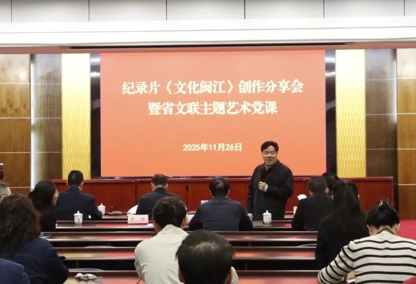 东南网11月27日讯(本网记者 陈楠 文/图)昨日,大型纪录片《文化闽江》创作分享会暨福建省文联主题艺术党课活动在文联会议室举办。本次活动由福建省文学艺术界联合会、福建省广播影视集团联合主办,省文联机关党委、机关工会及省电视艺术家协会共同承办,通过影像展映、主创交流与艺术党课相结合的形式,展现闽江文化的深厚底蕴与时代价值。