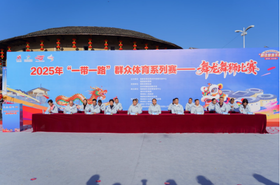 东南网11月28日讯(本网记者 薛莞馨)11月25日,2025年“一带一路”群众体育系列赛——舞龙舞狮比赛在世界文化遗产地福建南靖云水谣景区拉开帷幕。国家体育总局对外体育交流中心副主任屈洁,福建省体育局二级巡视员、群体处处长苏德新,漳州市体育局局长、一级调研员杨素萍,南靖县委书记李志勇等领导出席开幕式。来自“一带一路”沿线国家及港澳地区的10支高水平队伍、近200名运动员齐聚一堂,为观众带来了一场集体育竞技与文化展示于一体的精彩盛会。
