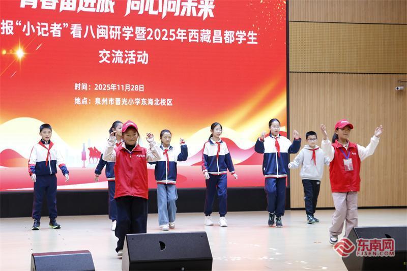 此次交流活动,泉州市晋光小学通过共上一堂课、共跳一支舞、共踢一场球等形式,搭建闽藏文化交融的“连心桥”,铸牢中华民族共同体意识。据泉州市晋光小学副校长张祝莲介绍,自2023年起,泉州市晋光小学与西藏自治区昌都市洛隆县第一小学建立“名优校+”教育发展共同体联盟,依托5G技术搭建起深度协作的教育桥梁,让两地师生在协同成长中厚植家国情怀,共绘教育共富的美好图景。